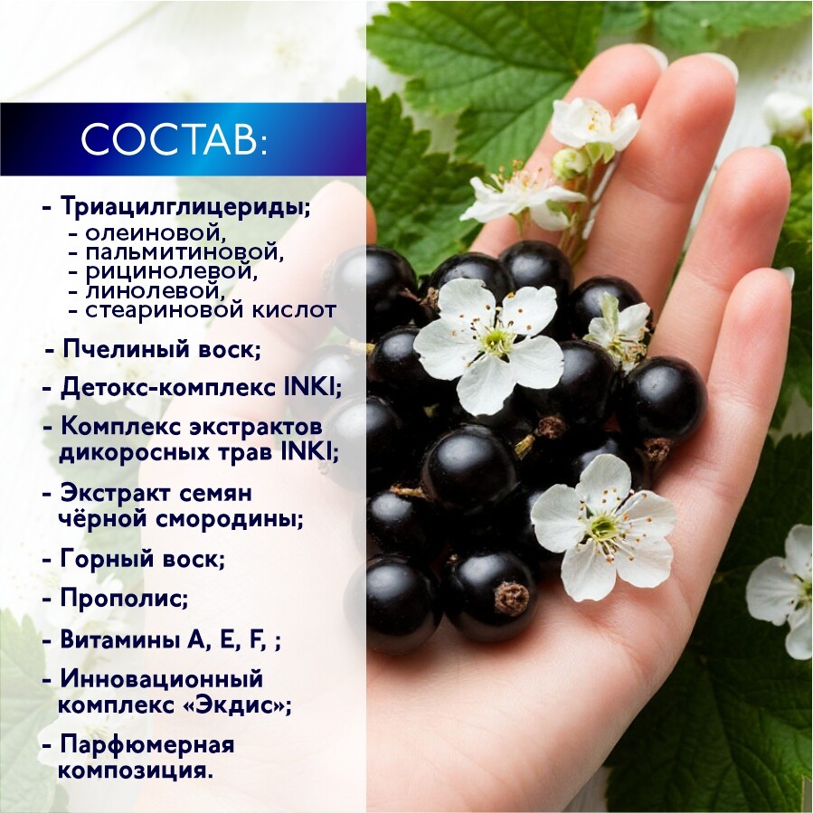 Комплекс дикоросных трав насыщает кожу питательными веществами и микроэлементами.