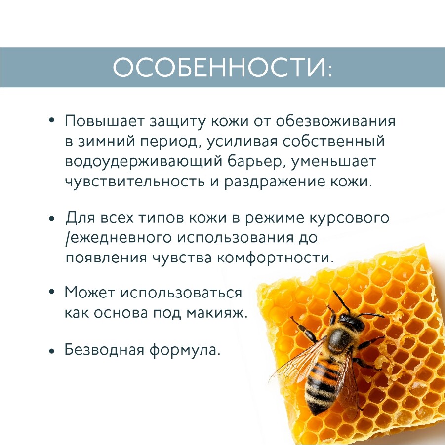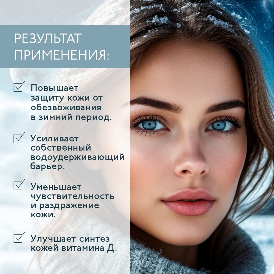 Формула бальзама идентична родной жировой пленочке кожи. При регулярном использовании бальзам повышает защиту кожи от обезвоживания в зимний период, усиливая собственный водоудерживающий барьер, уменьшает чувствительность и раздражение кожи, улучшает синтез кожей витамина Д. Безводная формула. Для всех типов кожи в режиме курсового/ежедневного использования до появления чувства комфортности. Может использоваться как основа под макияж. Для всех типов кожи.