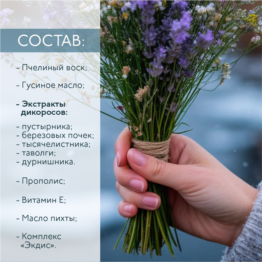 - Бальзам обеспечивает комплексную защиту и уход за кожей рук.