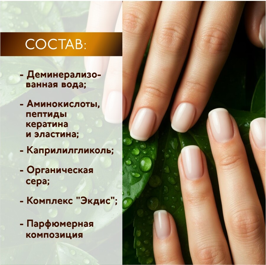 Этот состав делает бустер для ногтей эффективным средством для комплексного ухода, способствуя восстановлению, укреплению и ускорению роста ногтей.