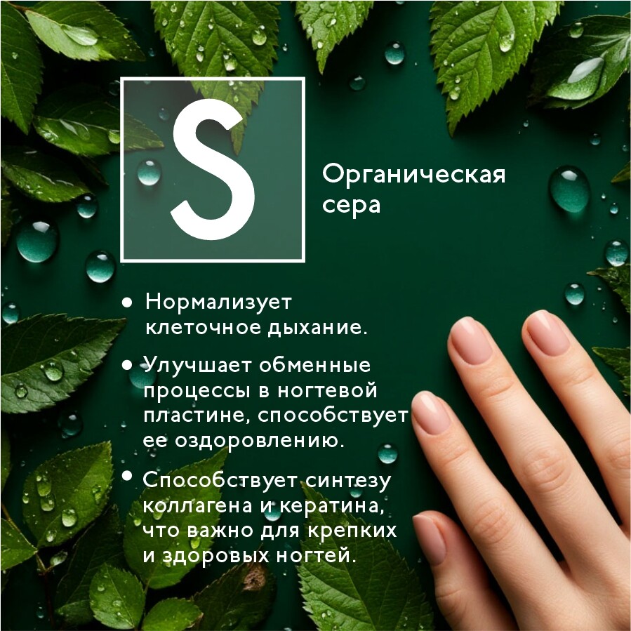 Органическая сера нормализует клеточное дыхание, что улучшает обменные процессы в ногтевой пластине и способствует ее оздоровлению.
