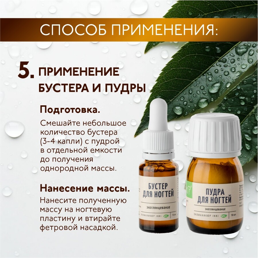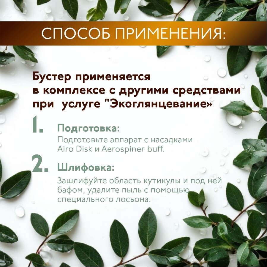 Регулярное использование бустера в процедуре "Экоглянцевание" поможет вам достичь здоровых, крепких и блестящих ногтей.