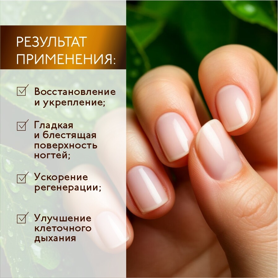 Нормализует клеточное дыхание, улучшает обменные процессы в ногтевой пластине и способствует ее оздоровлению.