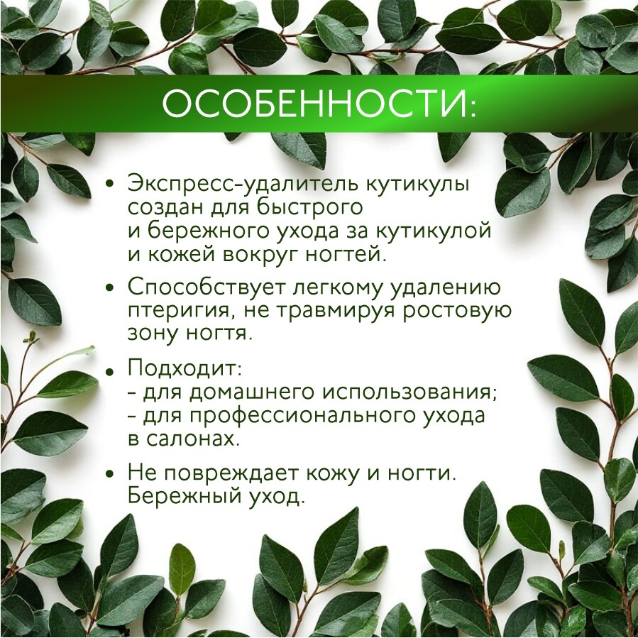 Экспресс-удалитель кутикулы создан для быстрого и бережного ухода за кутикулой и кожей вокруг ногтей.