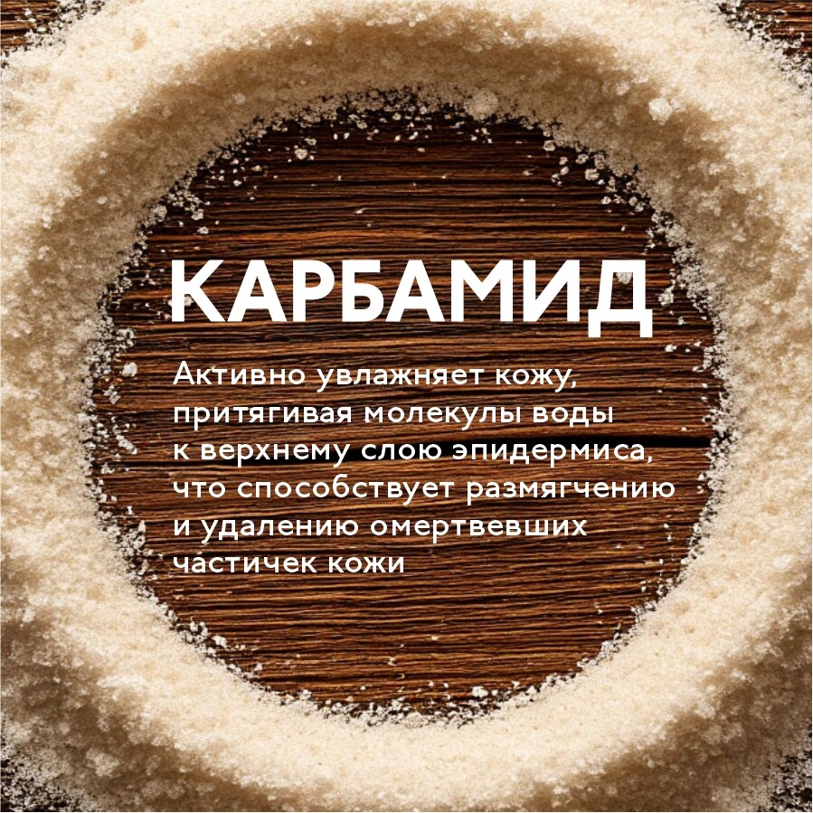 Активно увлажняет кожу, притягивая молекулы воды к верхнему слою эпидермиса, что способствует размягчению и удалению омертвевших частичек кожи.