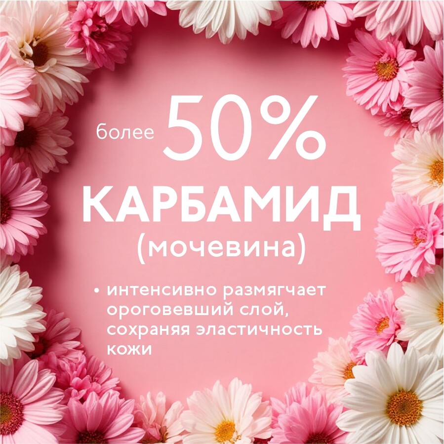 - Более 50% карбамид (мочевина) – интенсивно размягчает ороговевший слой, сохраняя эластичность кожи.