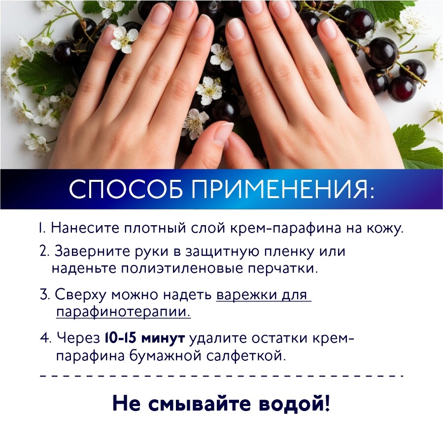 - через 10-15 минут удалите остатки крем-парафина бумажной салфеткой.