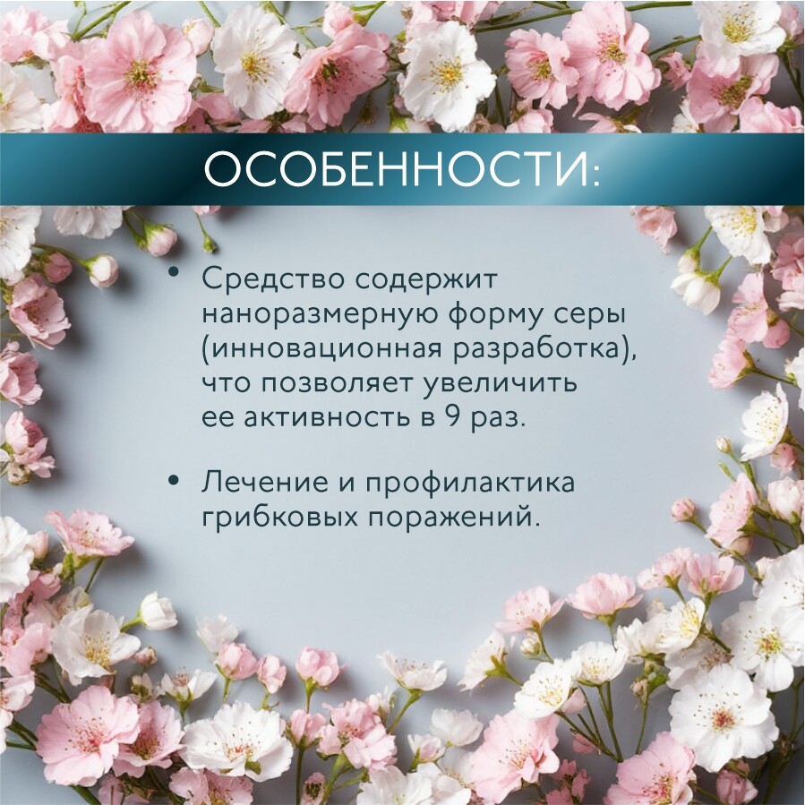 Средство содержит наноразмерную форму серы, что обеспечивает его высокую эффективность: