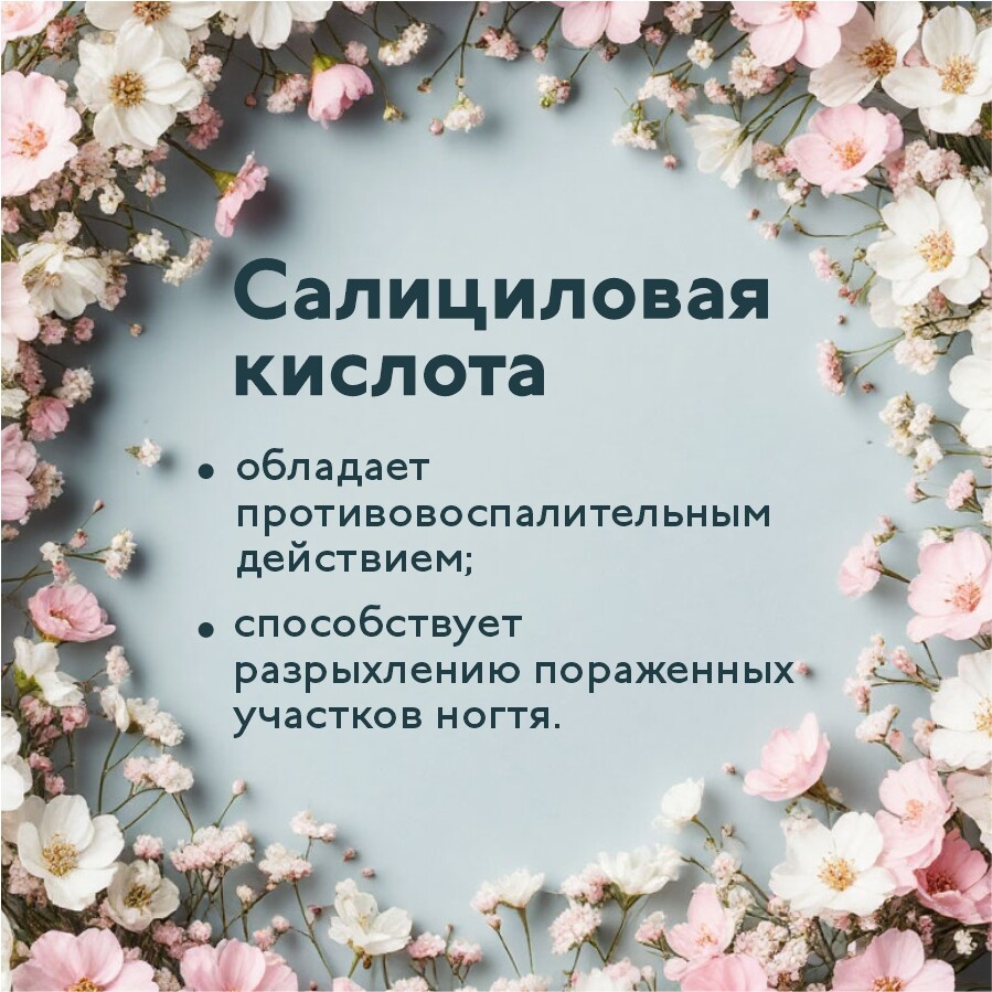Салициловая кислота - обладает противовоспалительным действием и способствует разрыхлению пораженных участков ногтя