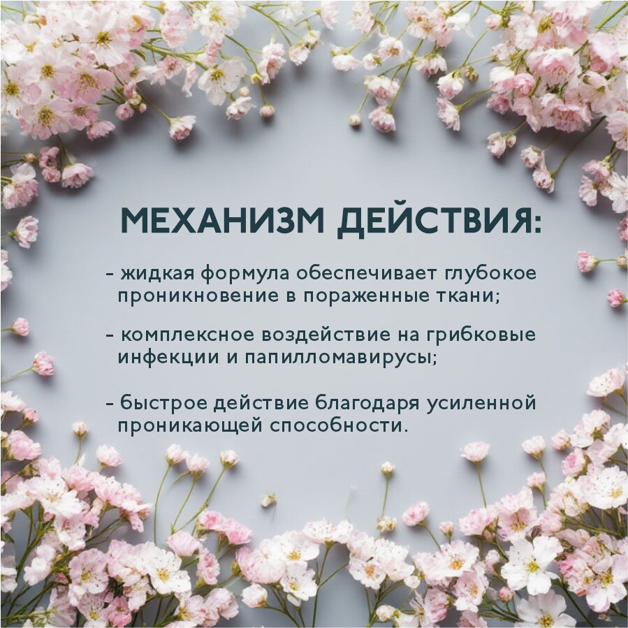 - комплексное воздействие на грибковые инфекции и папилломавирусы
