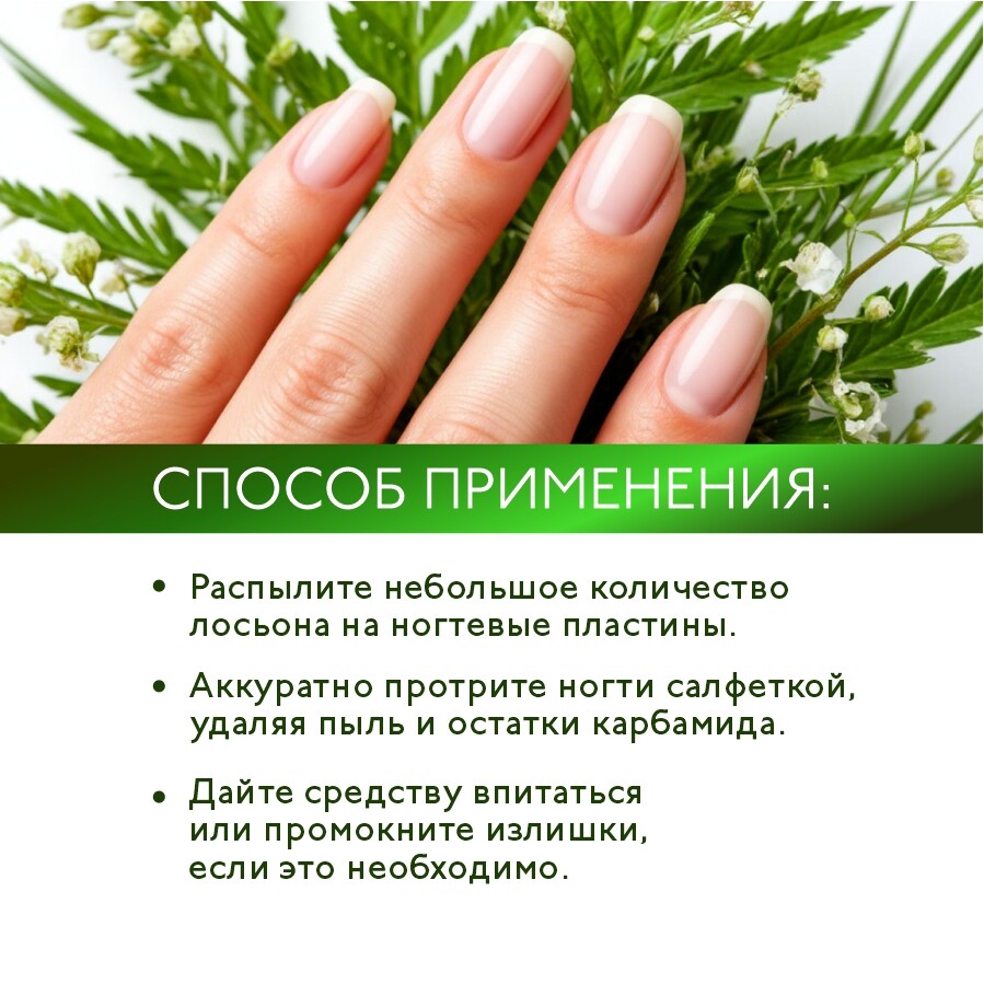 - Распылите небольшое количество лосьона на ногтевые пластины.