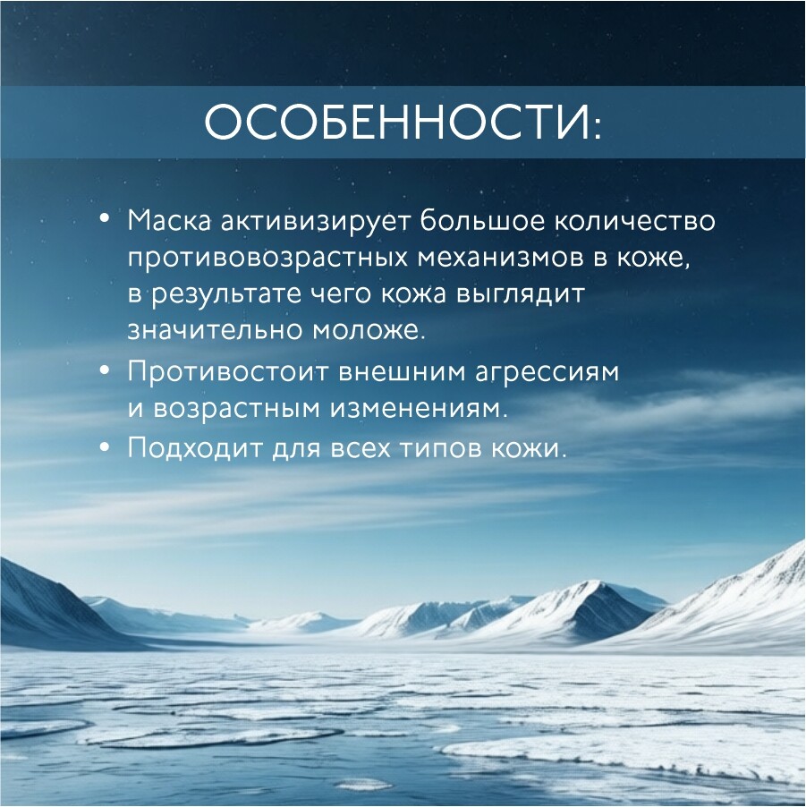 Маска активизирует большое количество противовозрастных механизмов в коже, в результате чего кожа выглядит значительно моложе.