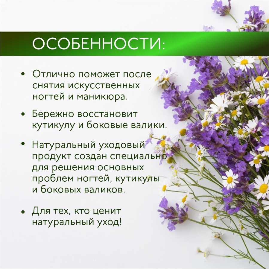 Этот натуральный уходовый продукт создан специально для решения основных проблем ногтей, кутикулы и боковых валиков.