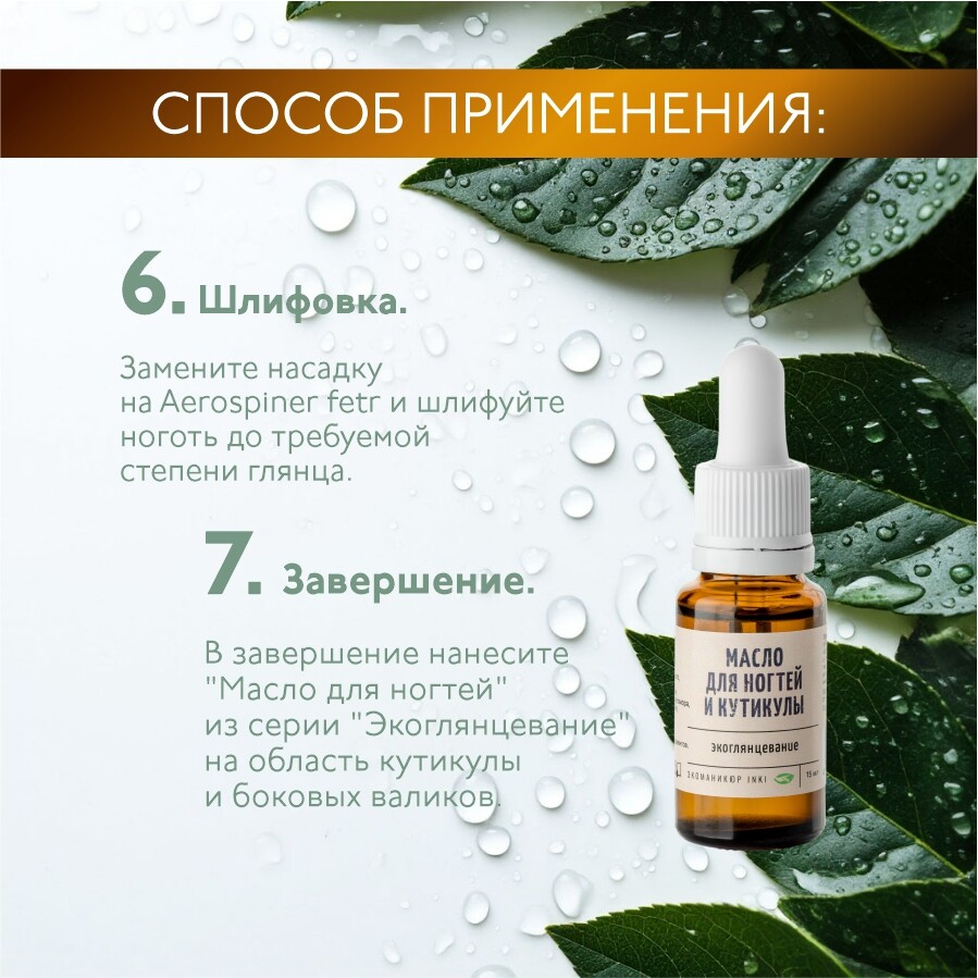 В завершение нанесите "Масло для ногтей" из серии "Экоглянцевание" на область кутикулы и боковых валиков.