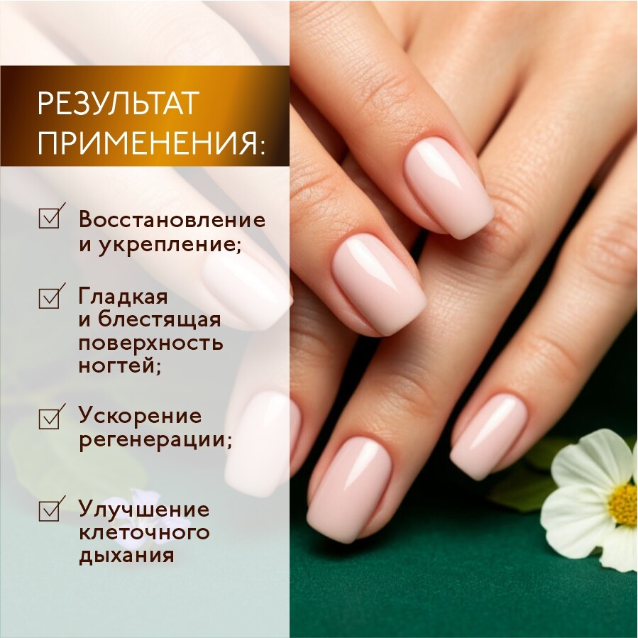 Восстанавливает ослабленную структуру ногтя, делая его более крепким и устойчивым к повреждениям.