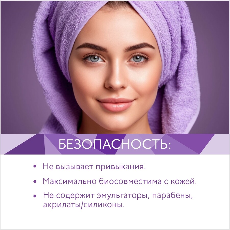 Не содержит эмульгаторы, парабены, акрилаты/силиконы.