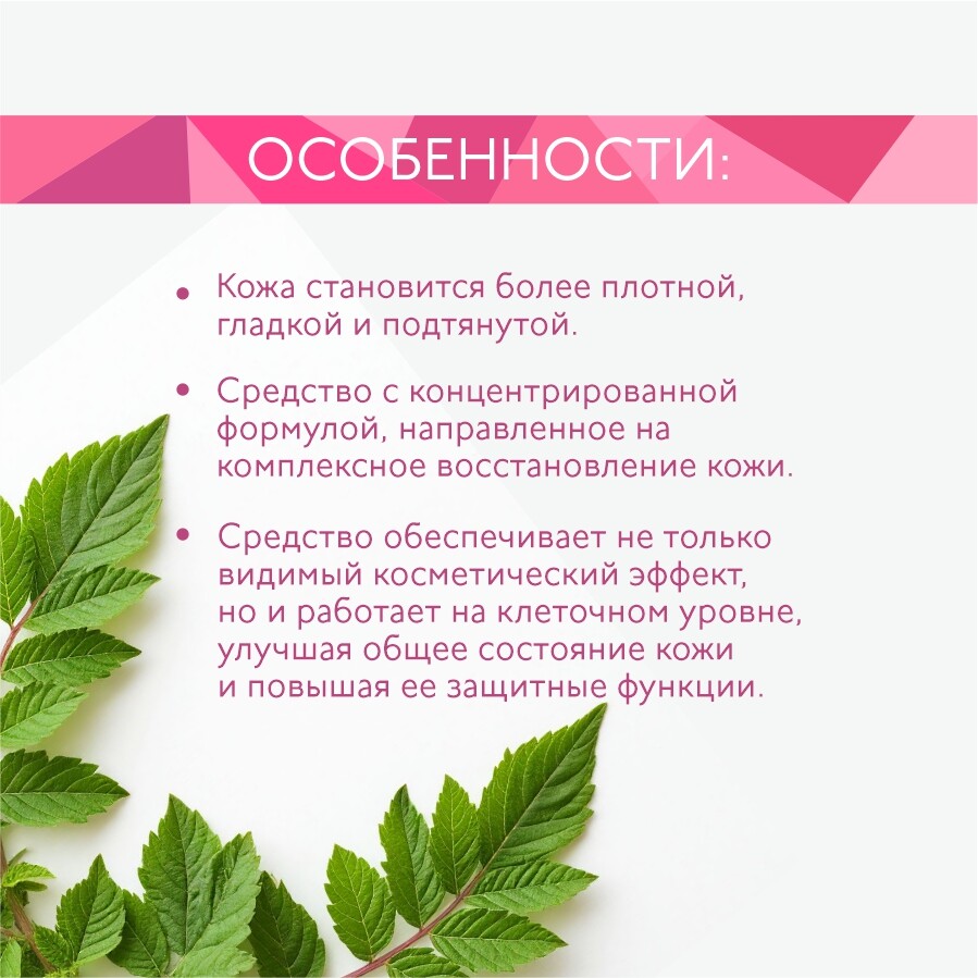 Средство обеспечивает не только видимый косметический эффект, но и работает на клеточном уровне, улучшая общее состояние кожи и повышая ее защитные функции.