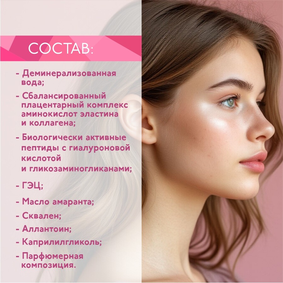 - сбалансированный плацентарный комплекс аминокислот эластина и коллагена