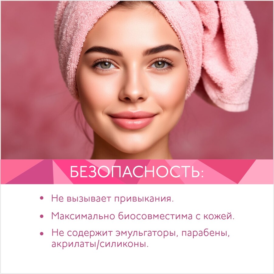 Не содержит эмульгаторы, парабены, акрилаты/силиконы.