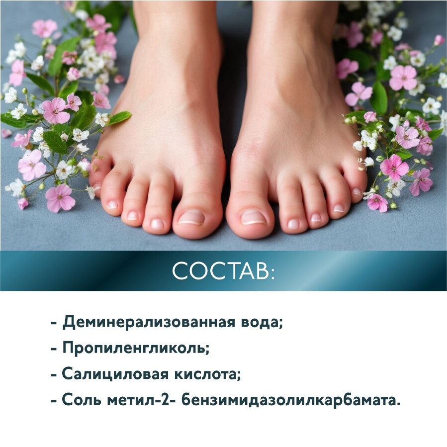 Нанести необходимое количество лосьона на проблемную кожу стоп.