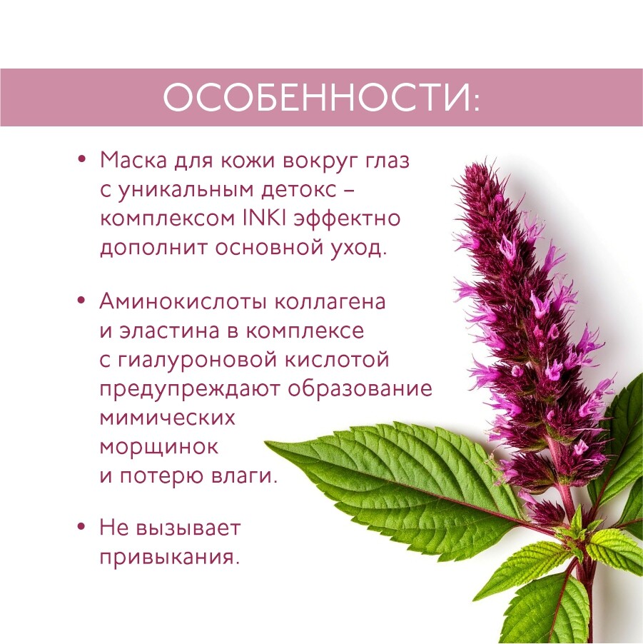 Маска для кожи вокруг глаз с уникальным детокс – комплексом INKI эффектно дополнит основной уход.