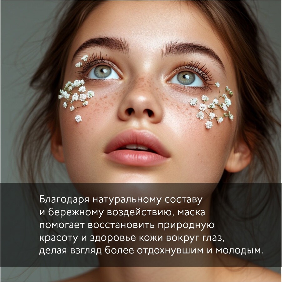Благодаря натуральному составу и бережному воздействию, маска помогает восстановить природную красоту и здоровье кожи вокруг глаз, делая взгляд более отдохнувшим и молодым.